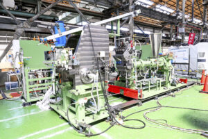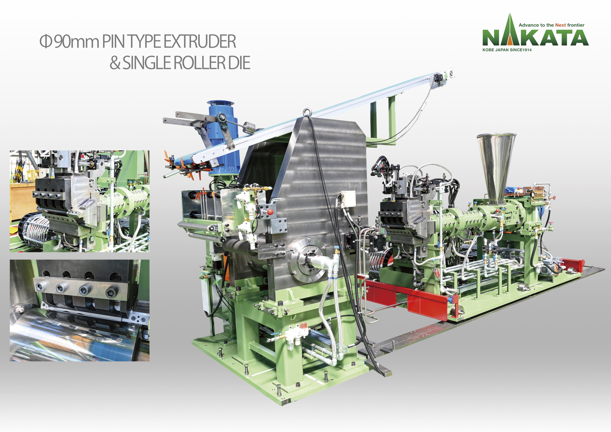 The roller head unit consists of a single or duplex extruder, a die head, and a vertical two-ball calender with head clamping devices. The broad width head and calender form the rubber compound into a sheet of uniform thickness, which can be varied from 0.5 mm -20 mm or greater in thickness. Nakata roller head units provide significant benefits over conventional calender systems in the production of inner liners, rubber sheets, V-belts, and elastic components.